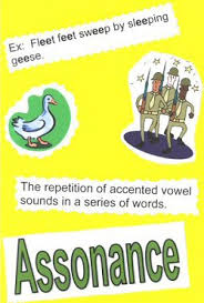 Assonance- The repeat of similar vowels of a stressed syllables